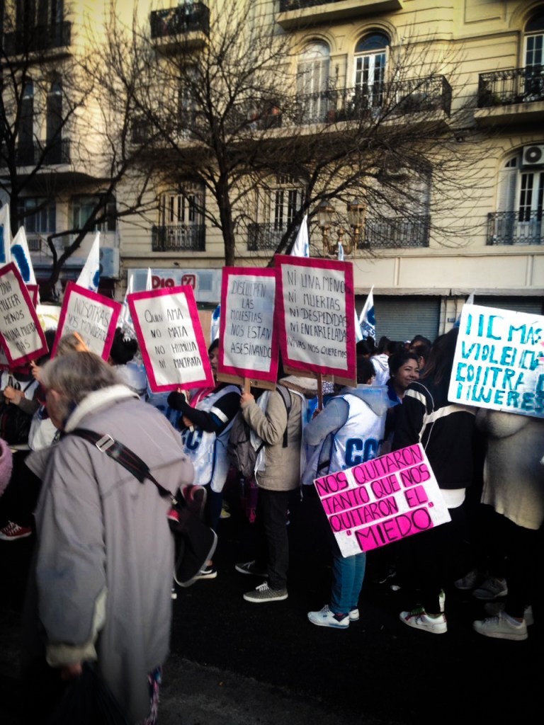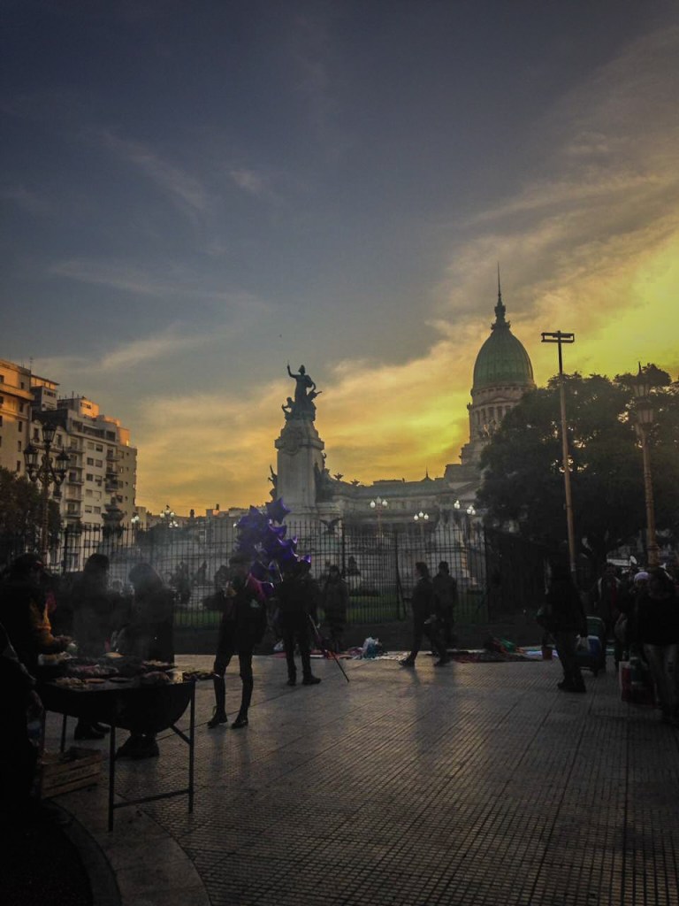 La marcha estuvo bastante descongestionada en comparación a otras de las que he participado. Hacía frío, había humo del choripan y los patys a la parrilla. Al llegar a la plaza de mayo Oli ya estaba cansada, las 13 cuadras pueden ser mucho para una nena que recién se inicia en el mundo de la movilización, pero estoy convencida del valor de aprender a luchar, sobre todo siendo inmigrante y viniendo de un país en el que se ha estigmatizado tanto la lucha social.